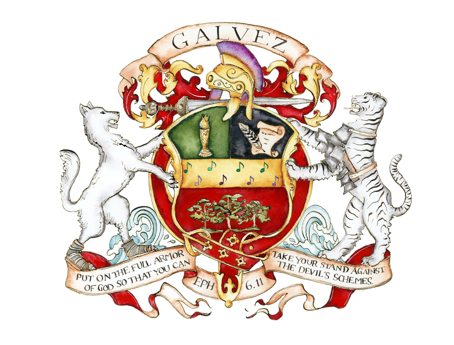 My favorite thing about Derius's artwork was the way he wove a verse from Ephesians through his piece. The motto he added was "Put on the full armor of God so that you can take your stand against the devil's schemes. (Ephesians 6:11). We went on to show the parts of the armor of God: the breastplate of righteousness on the tiger, the helmet of salvation at the top, the sword of the Spirit, and the belt of truth behind the shield. It was an inspiring way to illustrate the Word, and I loved the way it showed how we can weave the gospel into all the parts of our lives.