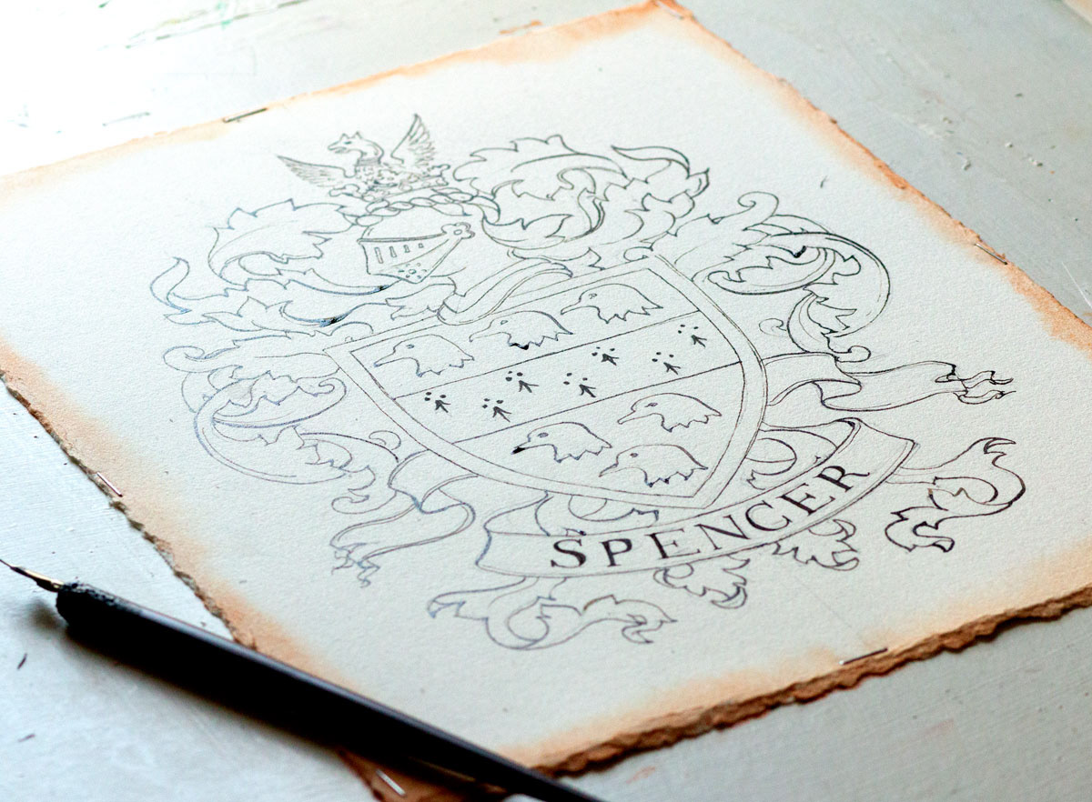 8" x 10" watercolor and gold leaf, inspired by a vintage crest.