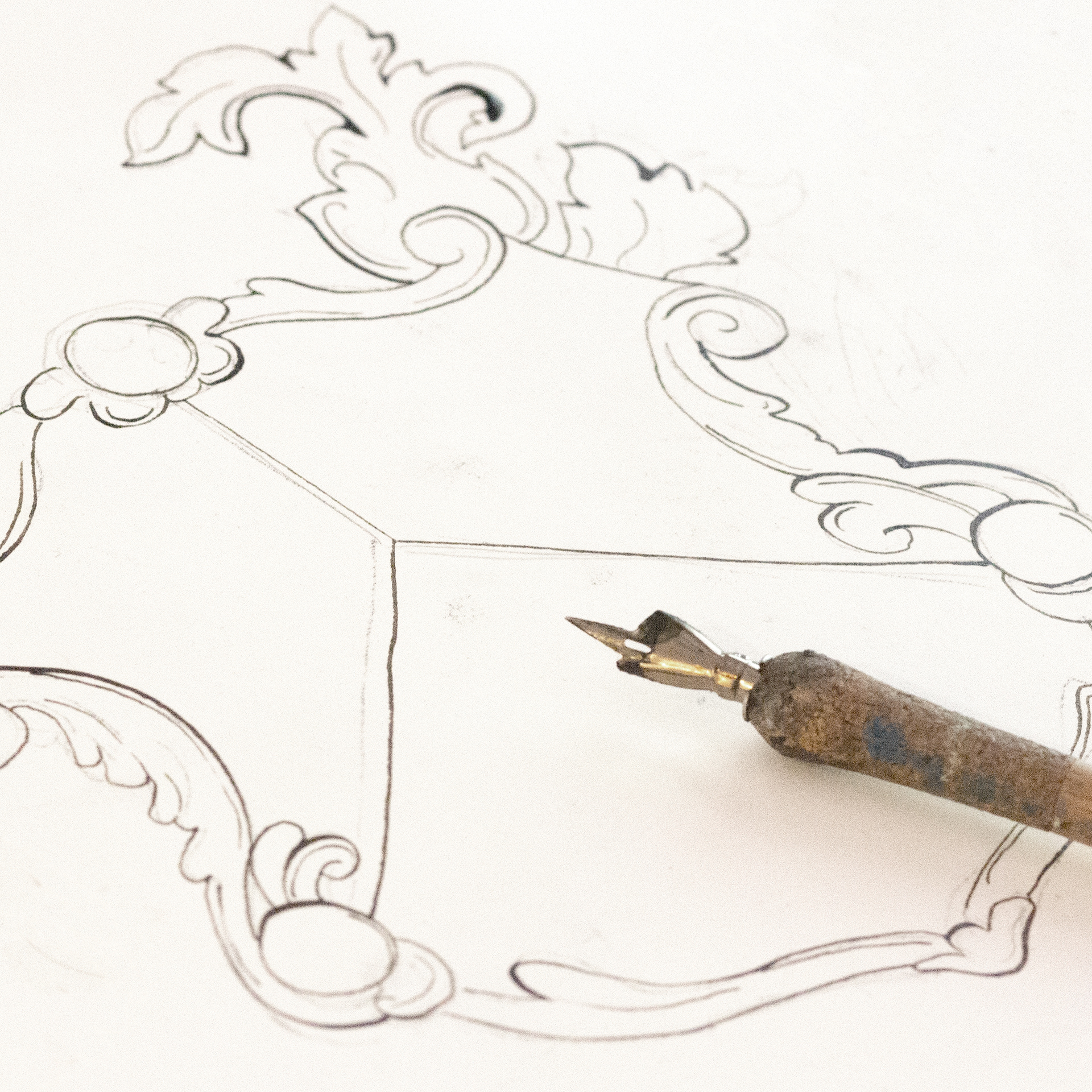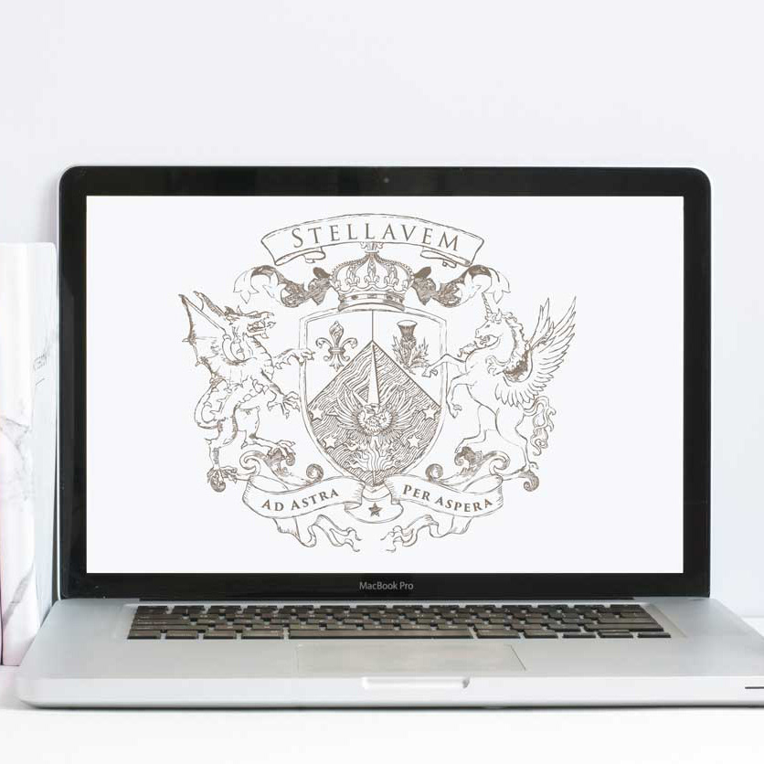Vector family crest with a dragon and a pegacorn, created for a wedding celebration.