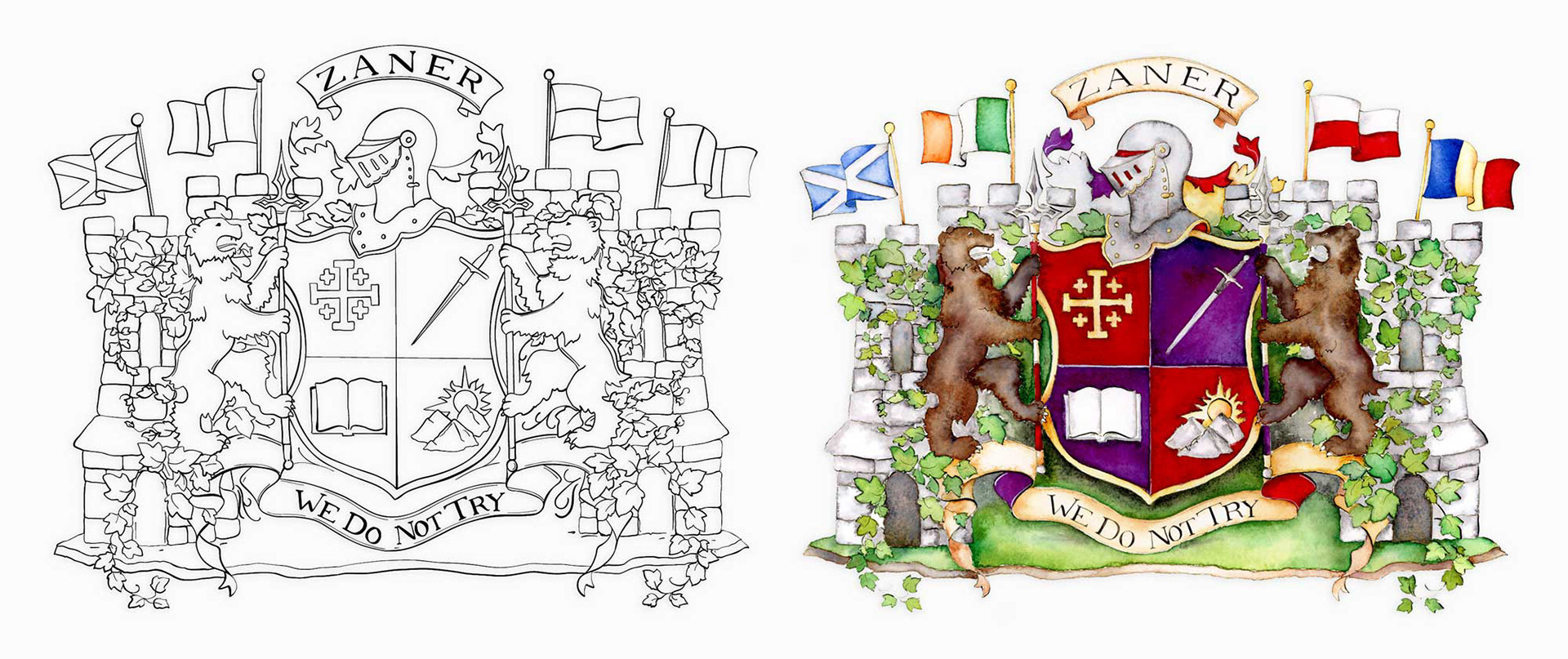 16" x 20" custom illustration created for the Zaner family. Delivered as an original watercolor, scalable vector, and transparent PNG.